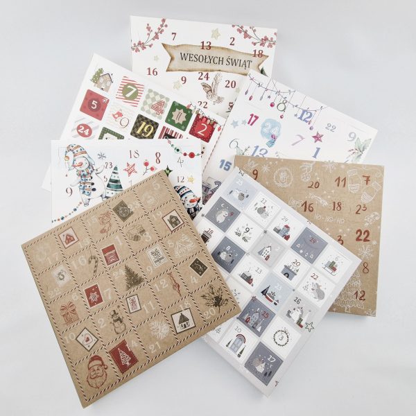Eleganckie pudełka na kalendarze adwentowe / 7 szt po 1 szt z każdego wzoru / do którego włożysz samodzielnie przygotowane czekoladki, trufle, pralinki lub inne drobiazgi. Idealne na prezent.
