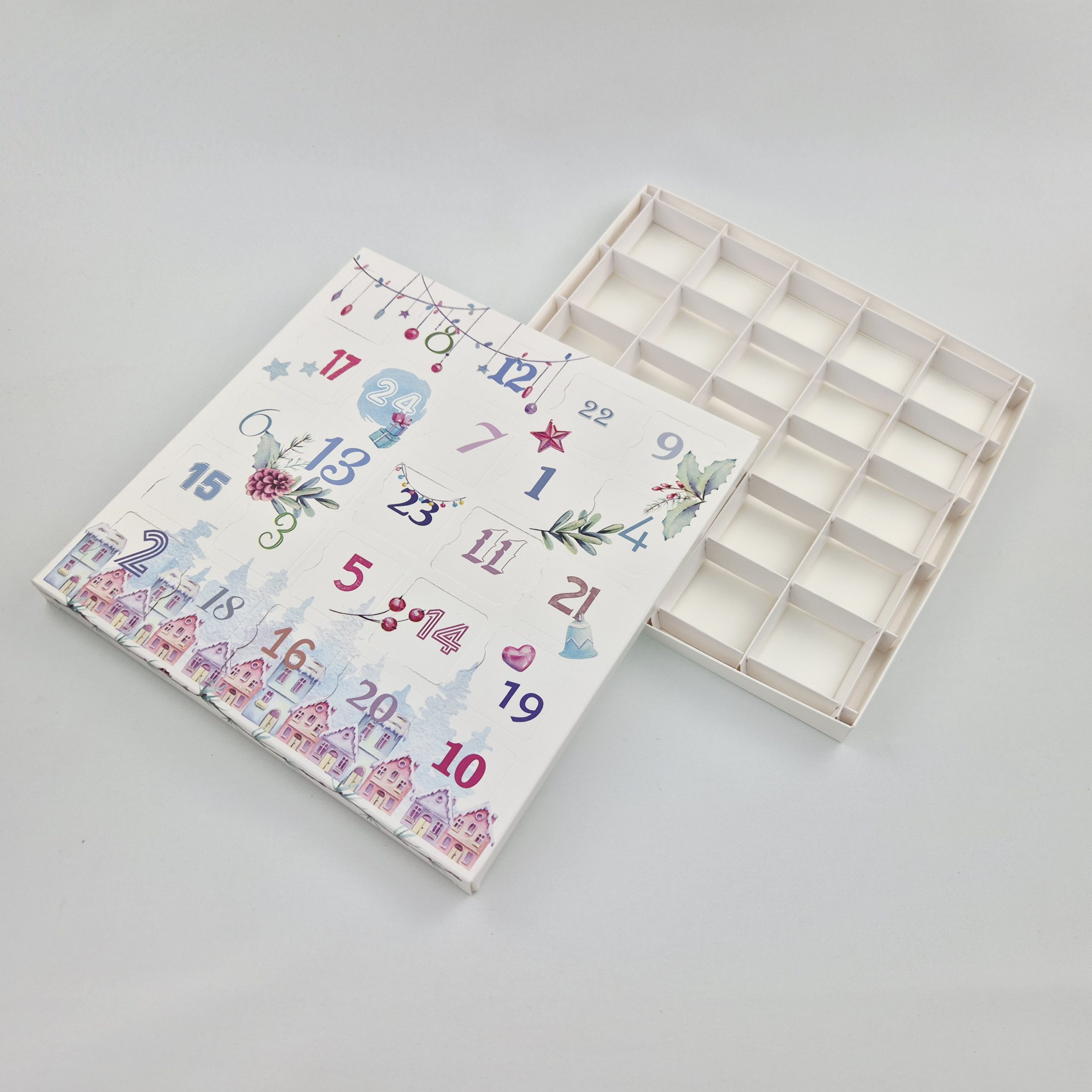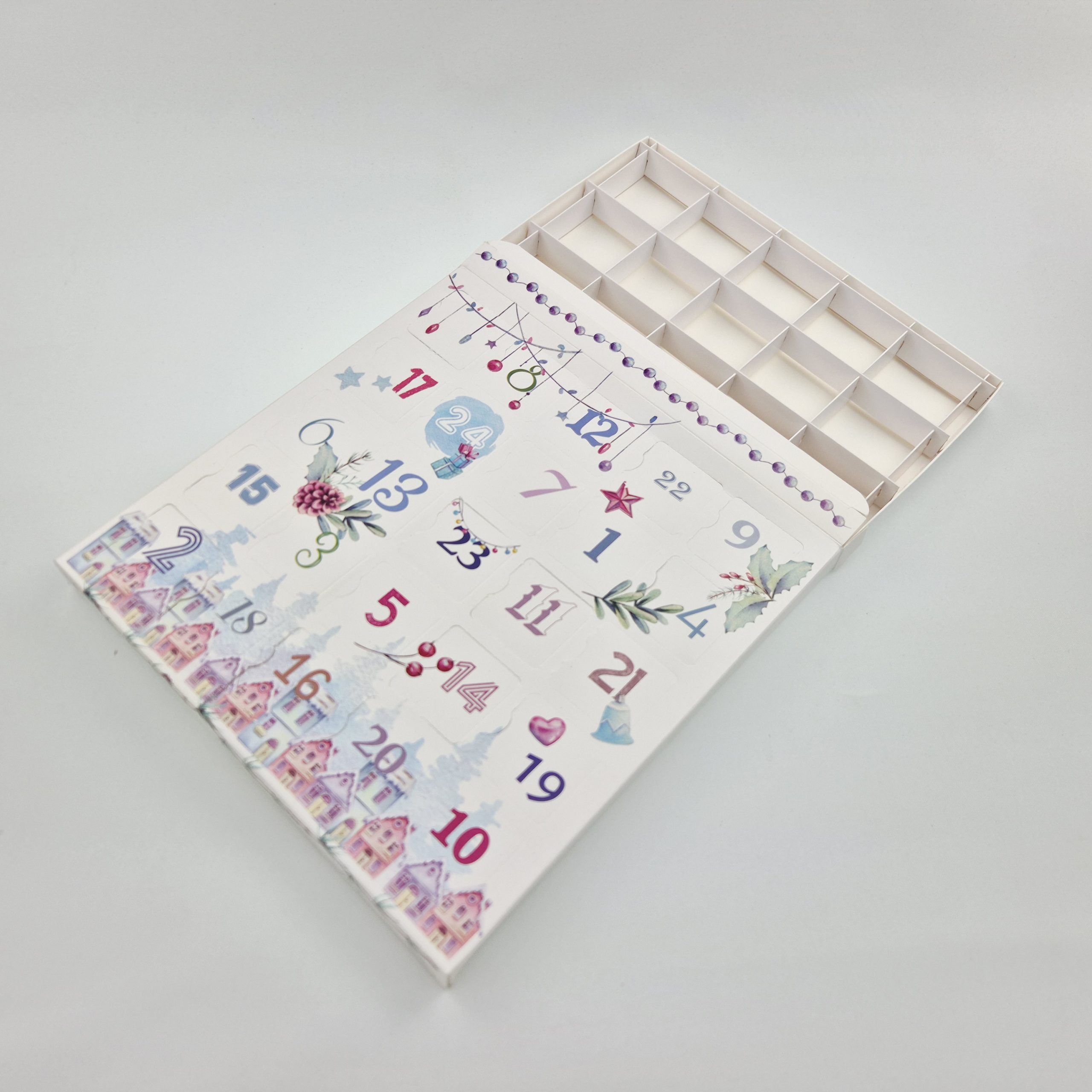 Pudełko Kalendarz Adwentowy z KRATOWNICĄ – PASTELOWY