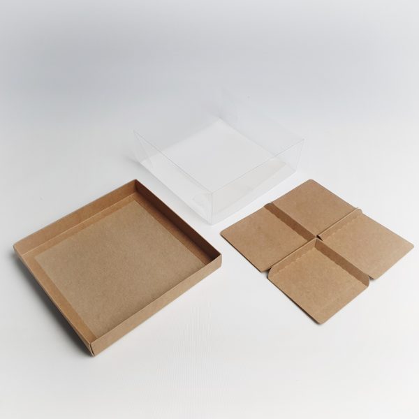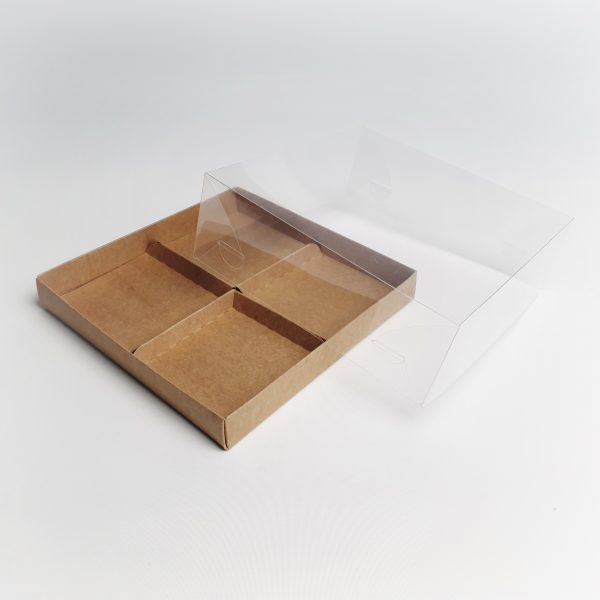 Pudełko na monoporcje 4 szt wykonane z eleganckiego kartonu w kolorze naturalnym z wysokiej jakości foliową pokrywką.