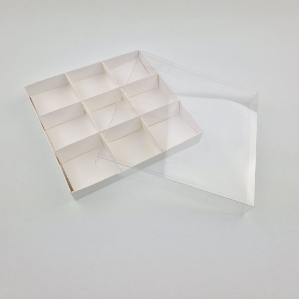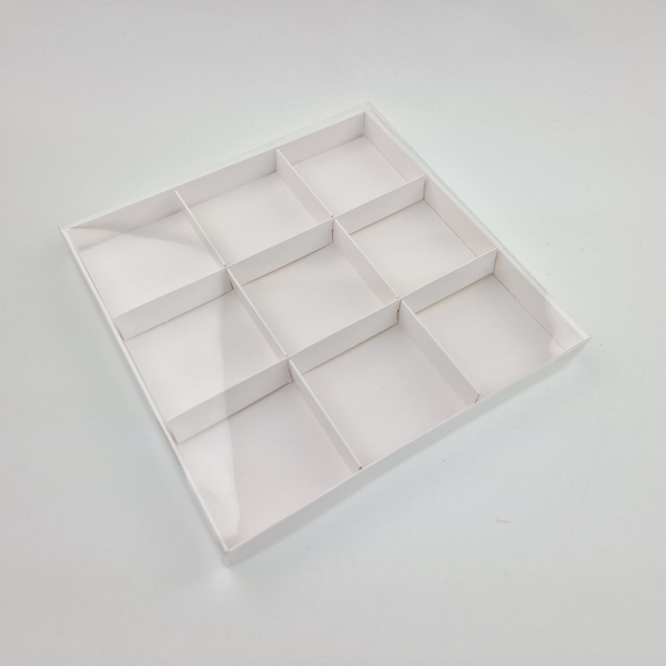 Pudełko z pokrywką FOLIA 15x15x2 z KRATOWNICĄ 9 cz – Białe